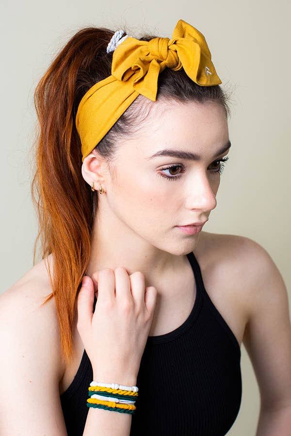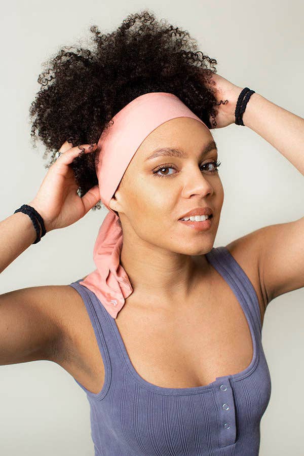 Our butter soft Tie Bands are multi-functional. They can be worn as a tie back headband, tied as a top knot headband, used as a hair scarf or tied in a bow for a cute ponytail/braid accessory, or used for heatless curls.