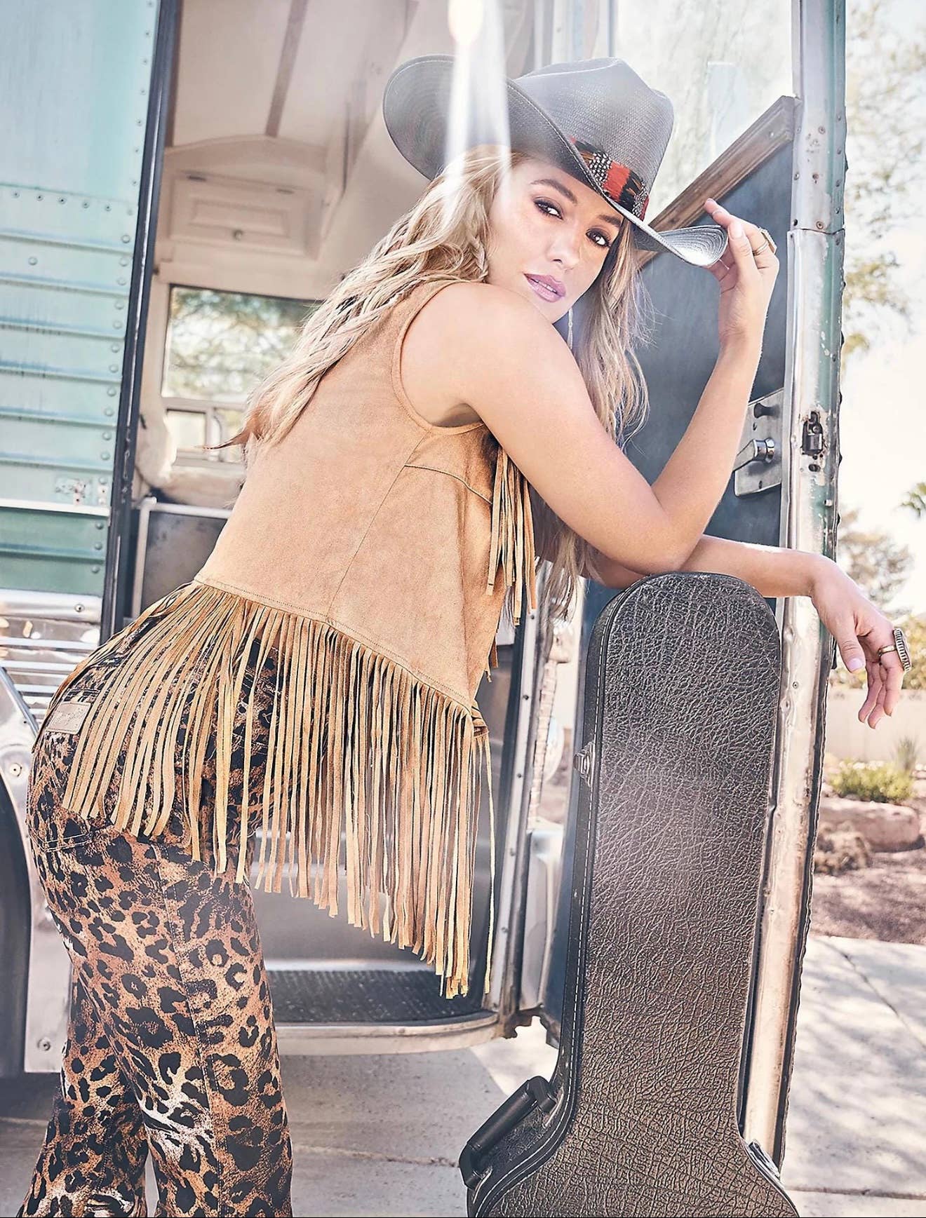As seen on Lainey Wilson in her Spring Wrangler Campaign.
