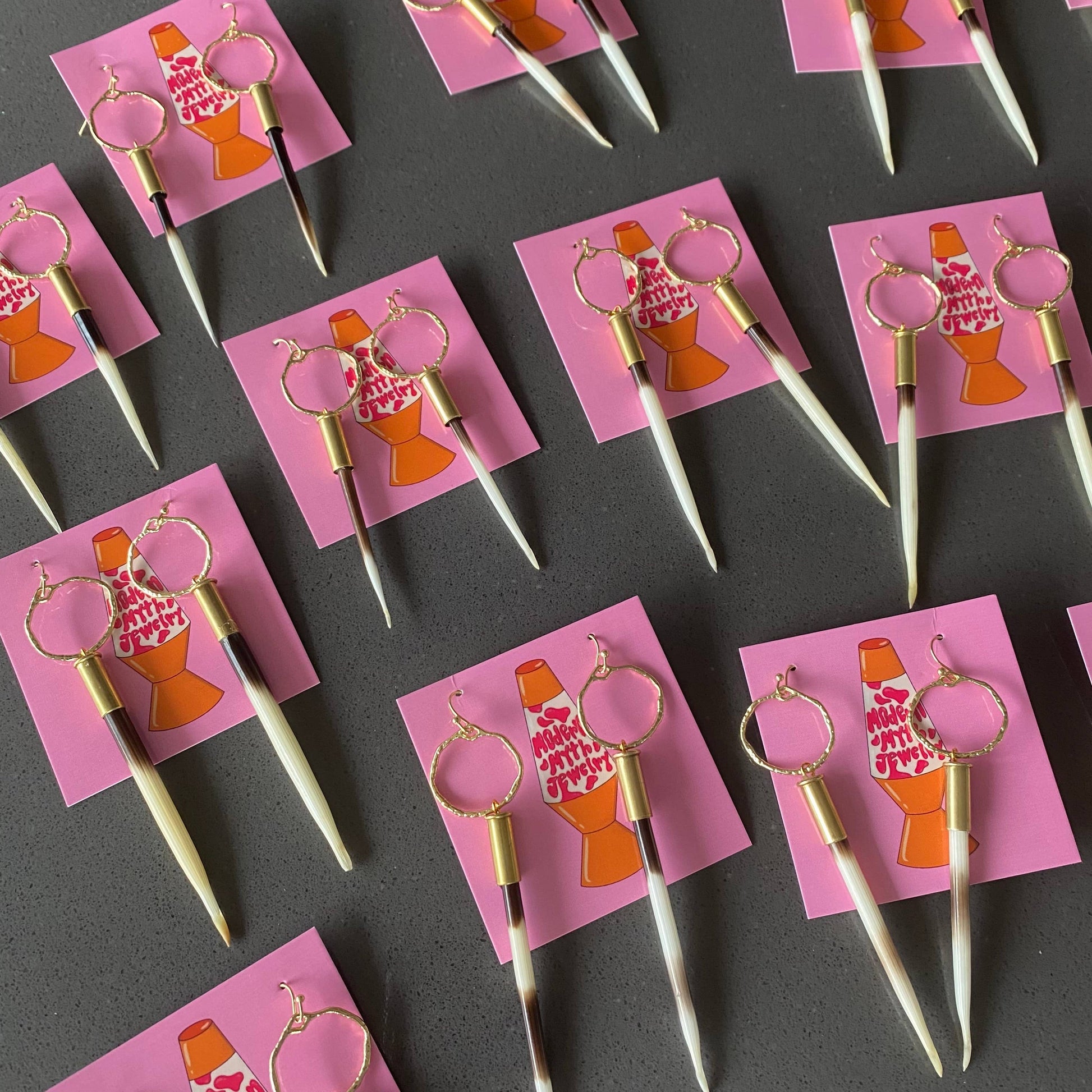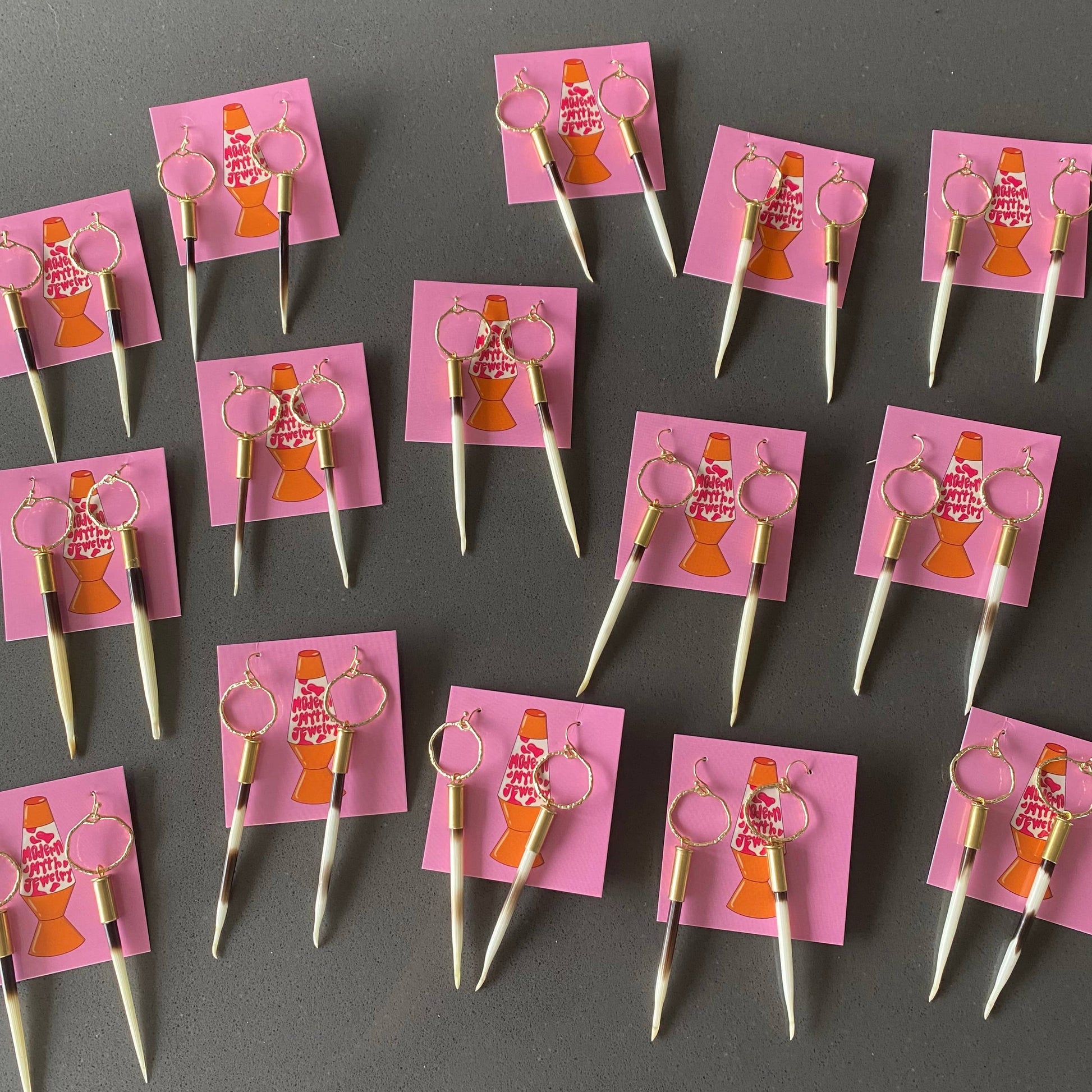 porcupine & shell casing/cap earrings. Lainey Wilson wore these for her new music video “wildflowers and Wildhorse's!” hooks are 14k gold plated our porcupine quills are ethically sourced length can vary* *please note color or pattern will vary per order. some quills may be mostly white, black, or a mix of the two. we try our best to include one black quill & one white / and or striped please see photos for possible quill variations :)
