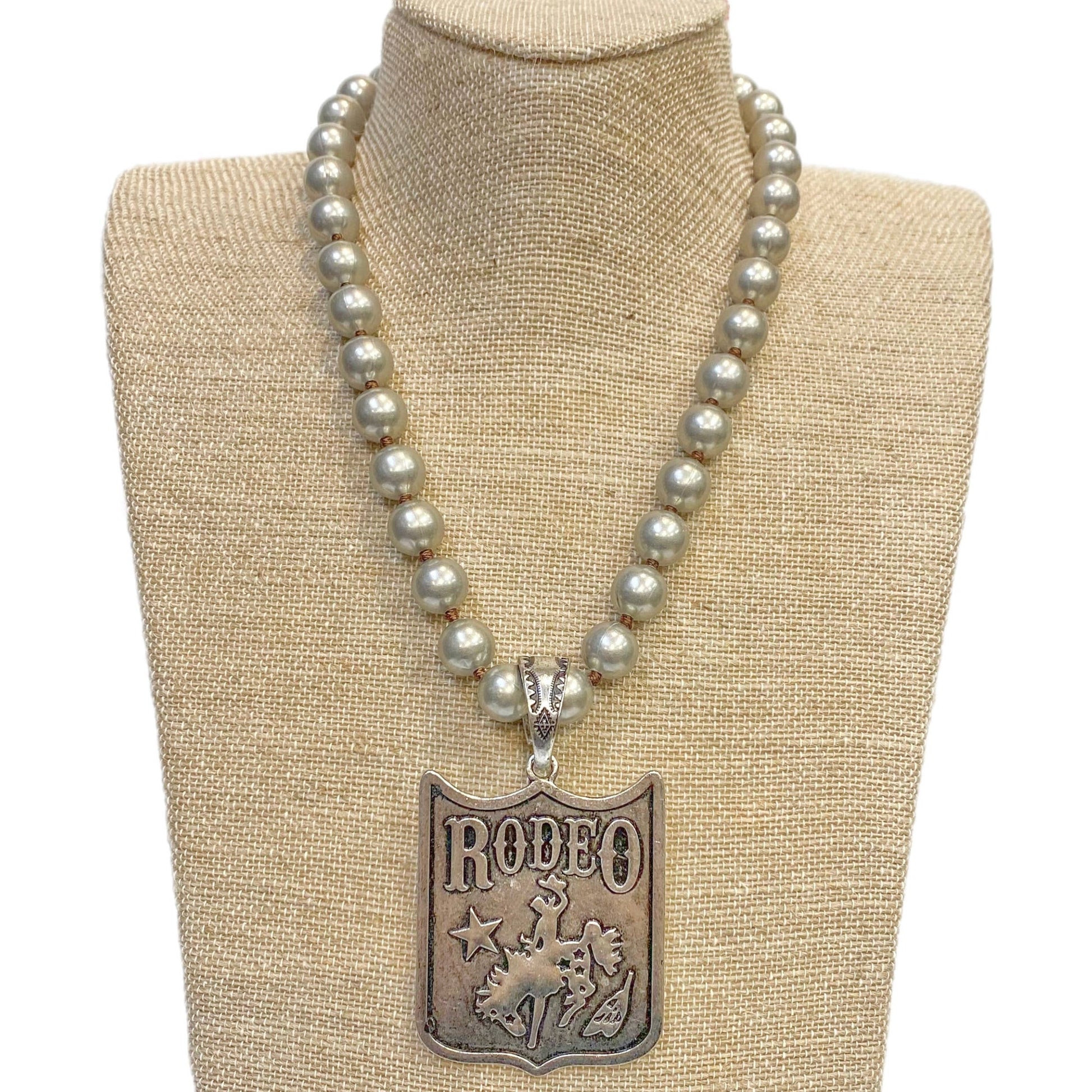 Rodeo (Horse Rider) Pendant on Faux Navajo Pearl Necklace